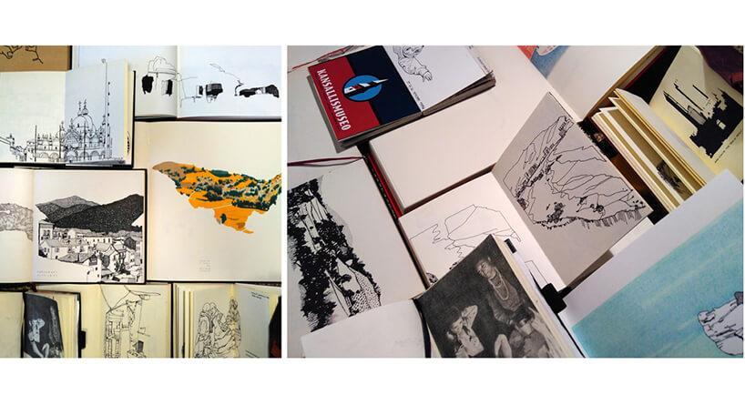 “Bidaia kuadernoak” bisitatu ditudan tokietan bertan zuzenean egindako lan horien bilduma bat da.